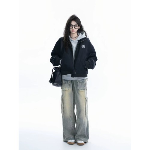 ノンメインストリームなヴィンテージデザインのカーディガン。冬用のバイクジャケット、ジッパー付きで粒感のあるアウター