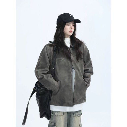 女性用のゆったりサイズのラフスキンジャケット、ジッパー付きアウターです